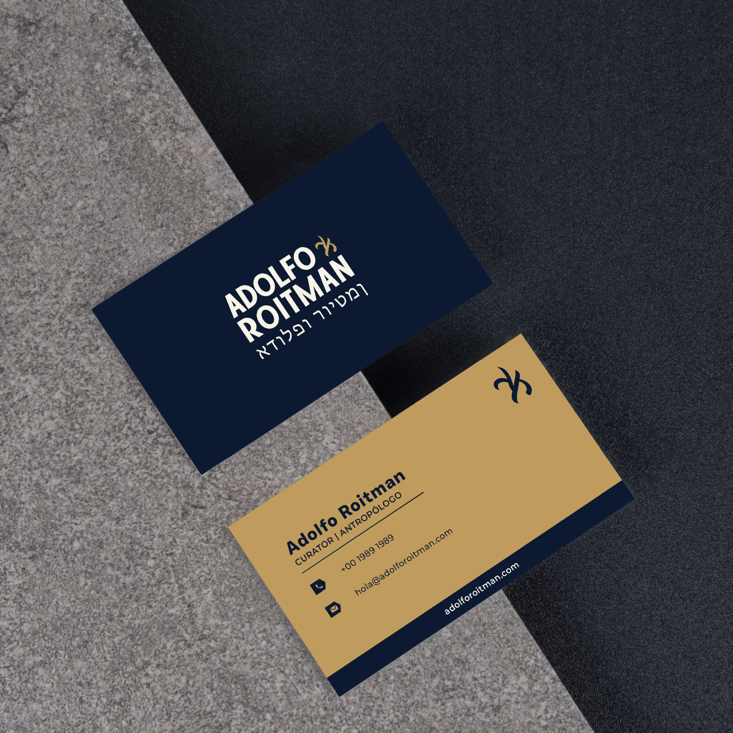 Adolfo Roitman es un académico y curador reconocido internacionalmente. La identidad visual buscó reflejar su trayectoria, autoridad y vínculo con el pensamiento histórico y religioso.